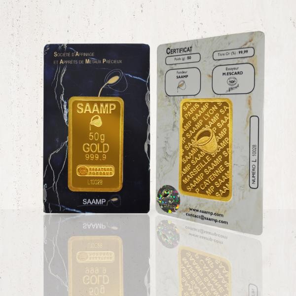 Le lingotin or de 50 gr est vraiment beau. De par sa taille supérieure aux lingotins de 5 et 10grs on distingue bien la qualité de l'estampe du creuset de fonte, et sa tenue en main grâce à la densité de l'or donne l'impression même d'un poids supérieur et c'est une sensation assez agréable de richesse.